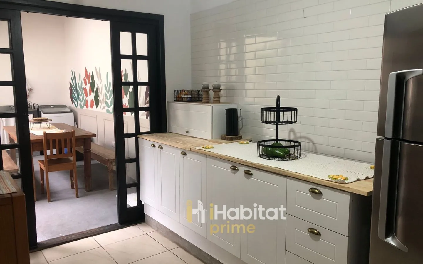 Parte de baixo tem sala de tv com banheiro que pode ser uma suíte , um segundo quarto , um banheiro social , cozinha , área gourmet e quintal